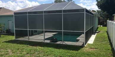 Patio Screen Repair. Pool enclosure screen repair. Rescreening from fl-screenrepair.com Please keep in mind that cage repainting requires that all screen is out obviously!! I contacted him immediately after the storm and even though he had no working office phone and spotty cell coverage, he did a good job communicating. Gerald did my lanai screen repair after irma.